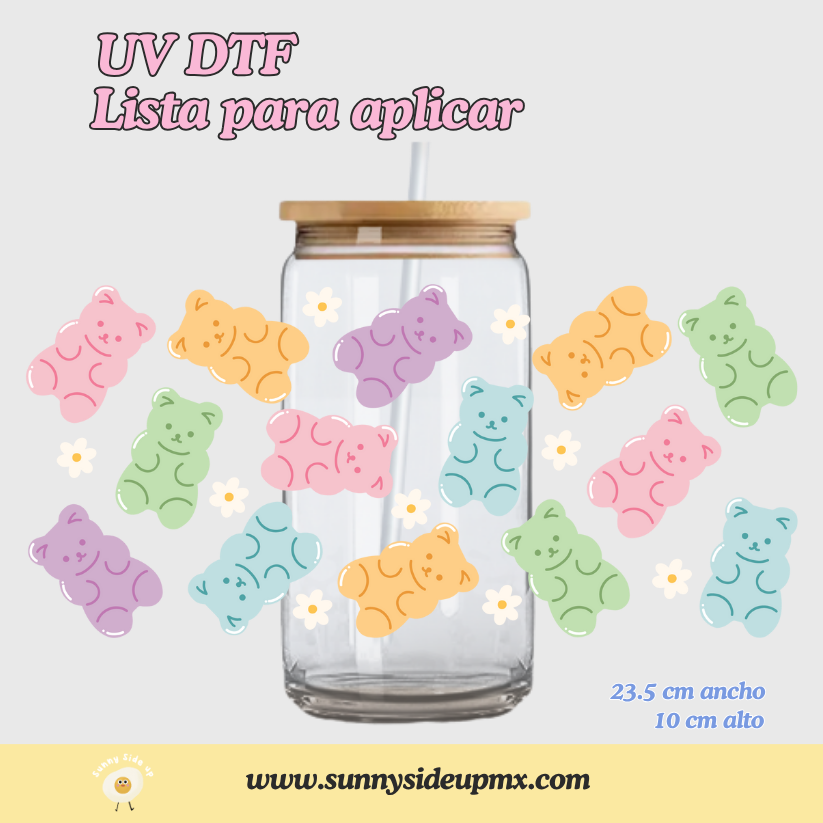 Dale el toque cute y divertido a tus vasos de 16 oz con las etiquetas UV DTF con diseño de Gummy Bears