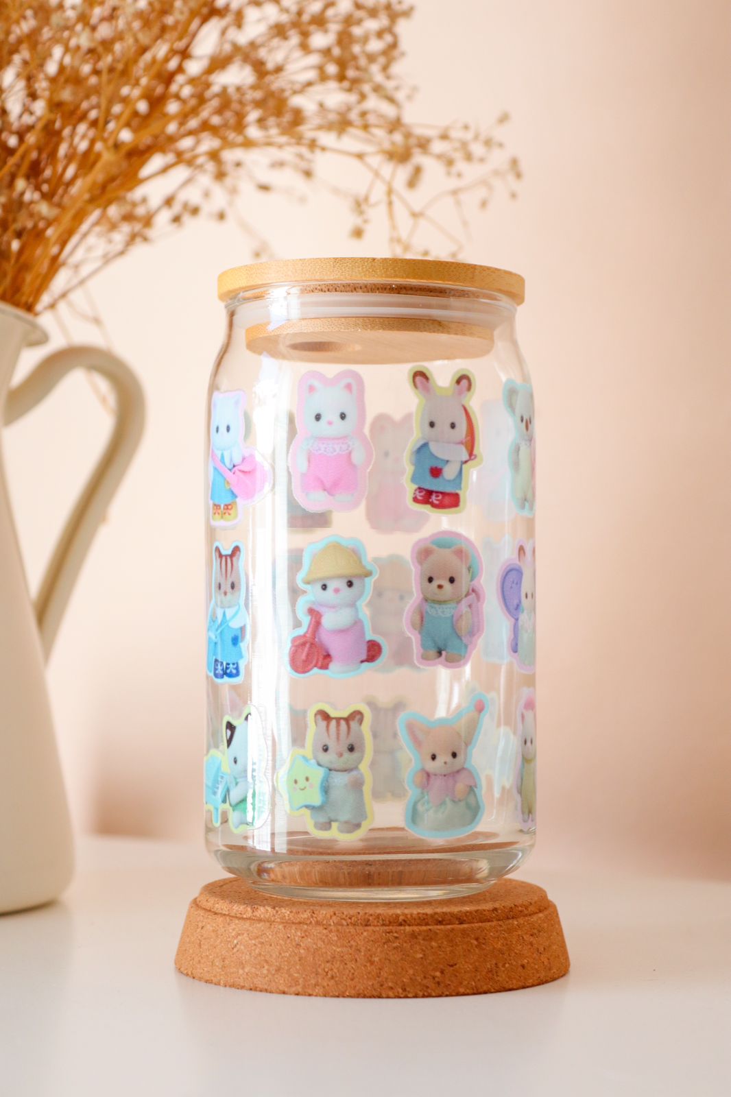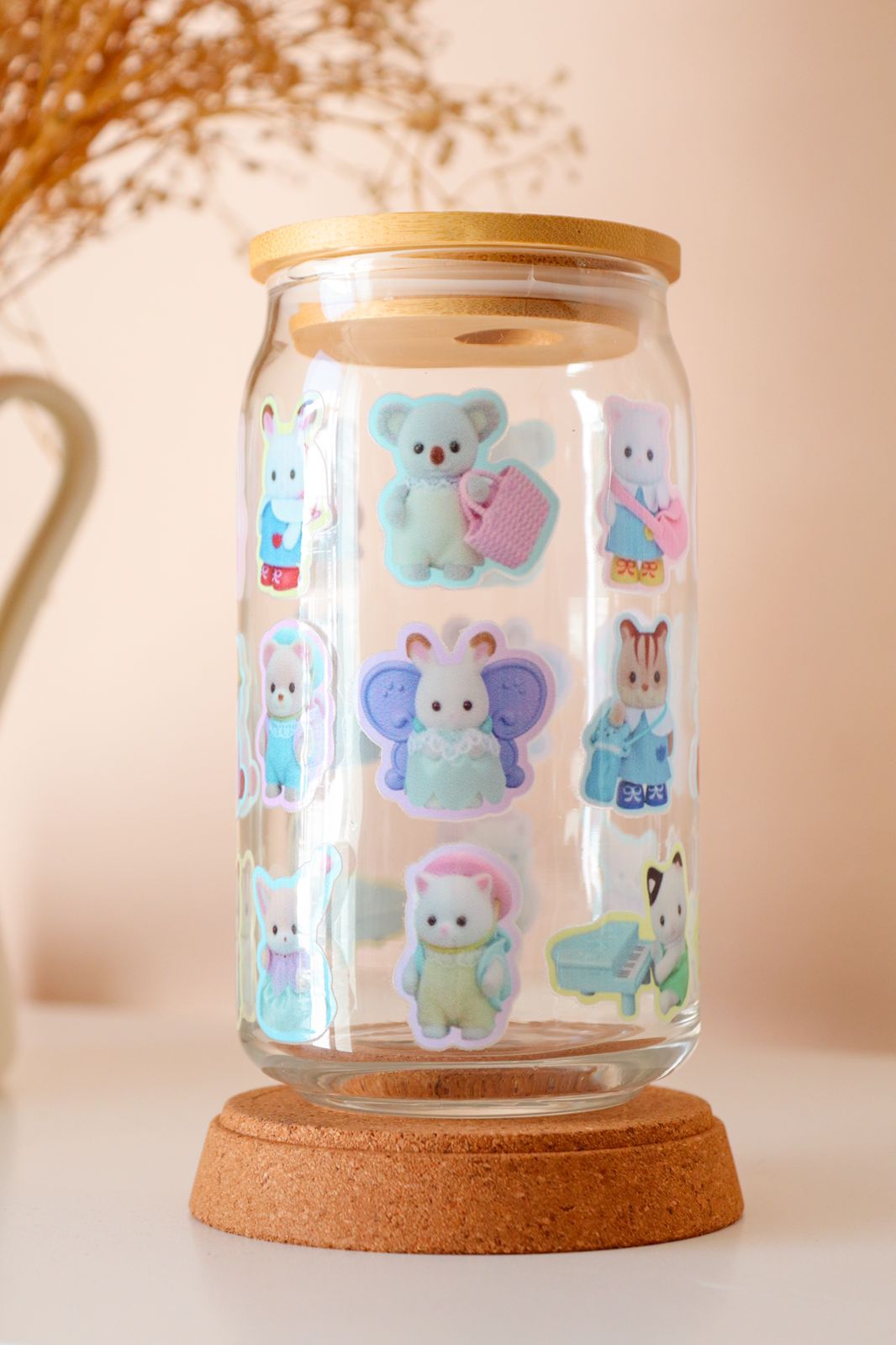 Este lindo vaso de cristal es perfecto para tomar tu bebida favorita con un toque personalizado.