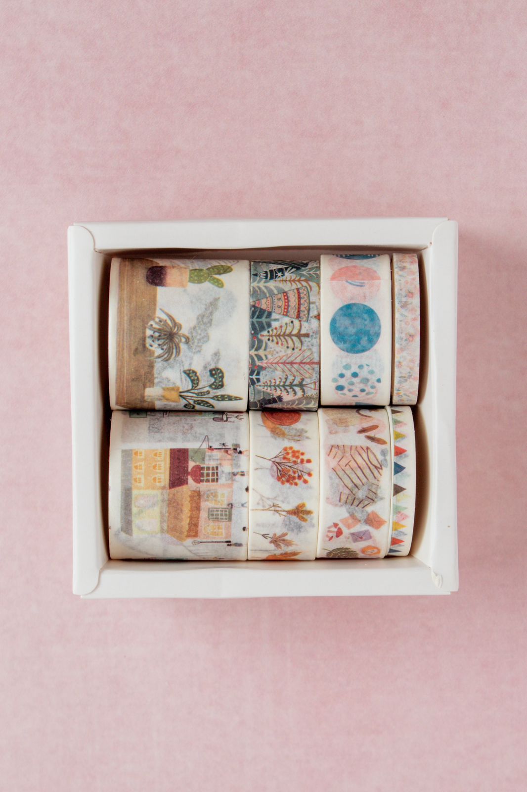 La cajita incluye 8 cintas de papel de distintos tamaños.